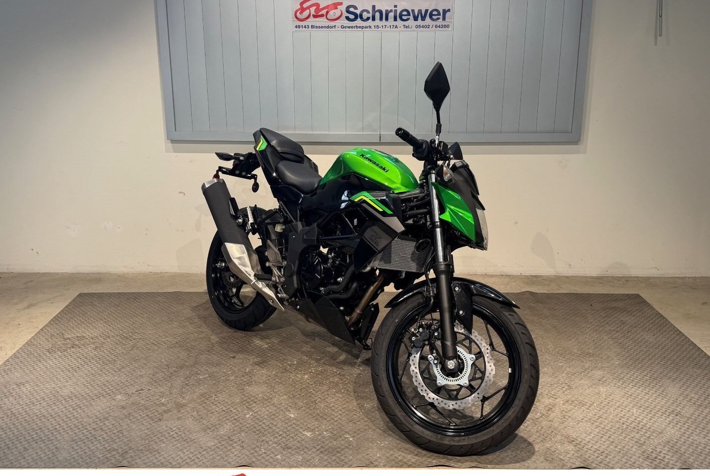 Mit Kawasakis einzigartiger Sugomi-Designphilosophie, die sofort ins Auge fällt, präsentiert sich das kleinste Mitglied der Z-Familie. Auffallen und ein starkes Naked-Bike-Statement setzen - genau dafür ist sie da. Der freiliegende Gitterrohrrahmen verbindet sich mit der minimalistischen, aggressiven Z-Verkleidung und lädt zu sportlicher Fahrweise ein. Der 15-PS-Motor (11 kW) ist sowohl einsteigerfreundlich als auch so sportlich, wie man es von Kawasaki erwartet. Die Z125 kann mit dem A1-Fu?hrerschein oder mit dem Autofu?hrerschein ab 25 Jahren (B196) gefahren werden und bietet ideale Voraussetzungen fu?r Führerschein-Neulinge.
