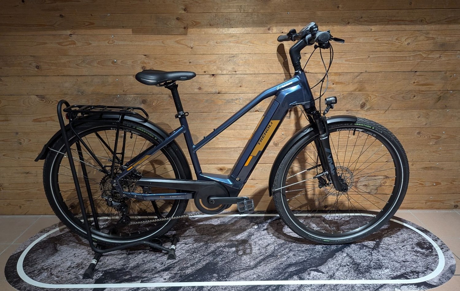 Trenoli Tanaro Sportivo - 625 Wh Sportliches Trekking-E-Bike mit hochwertigem Bosch Performance Line Mittelmotor (75 Nm) und Bosch PowerTube 625 Wh Akku für hohe Reichweite und gleichmäßige Unterstützung bis 25 km/h. Ausgestattet mit Shimano Deore 10-Gang Kettenschaltung, hydraulischen Scheibenbremsen und Federgabel für sicheres, kontrolliertes Fahren auf Asphalt, Radwegen und Schotter. Der stabile Aluminiumrahmen sorgt für präzises Handling und hohe Fahrstabilität. Komplett ausgestattet mit LED-Beleuchtung, Schutzblechen, Gepäckträger und Seitenständer - ideal für Pendler und Tourenfahrer mit Anspruch an Technik und Zuverlässigkeit.
